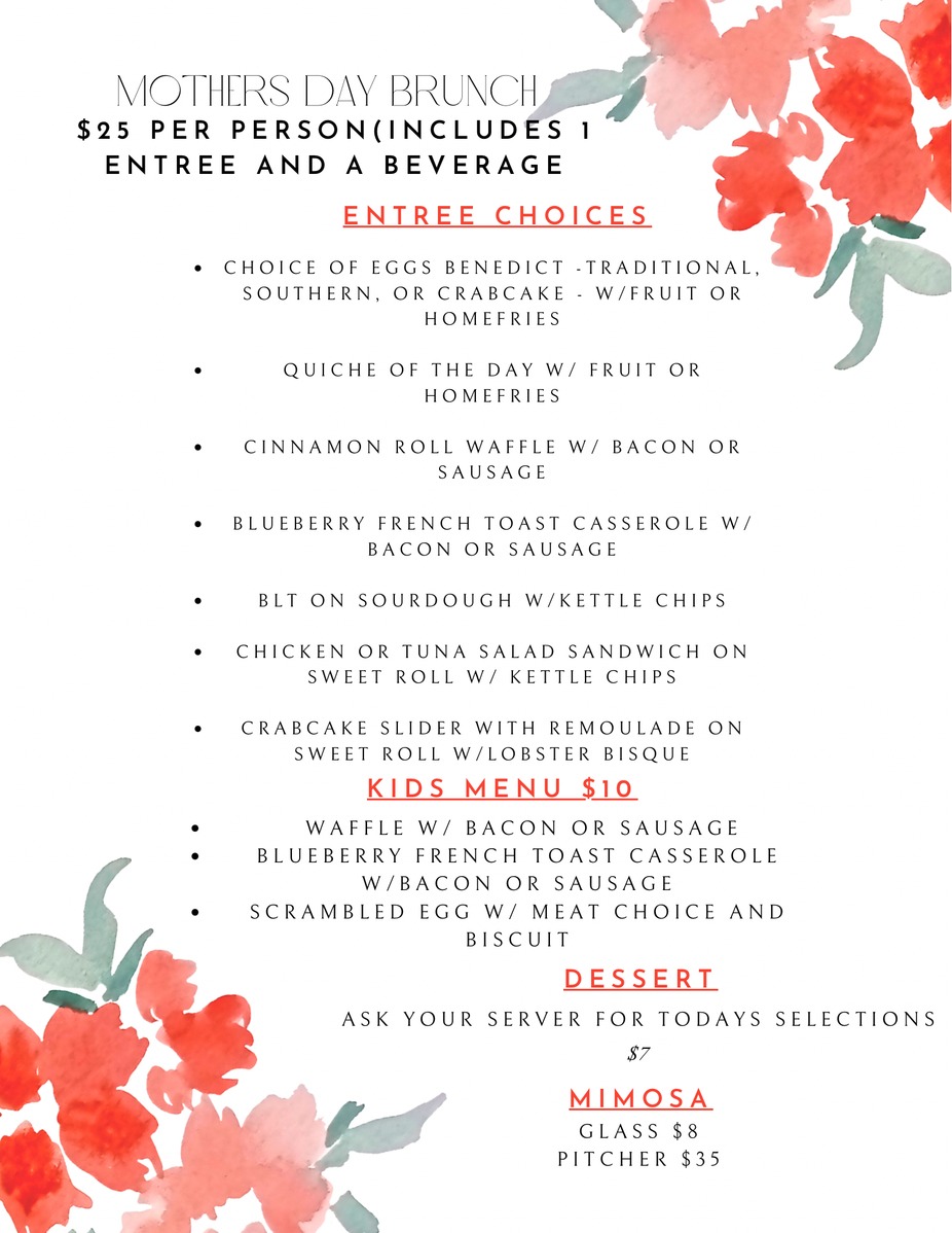 Join us on Mother's Day and treat your mom to a delicious meal! We are currently taking reservations for parties of 6 or more! Call us at 910-420-1030